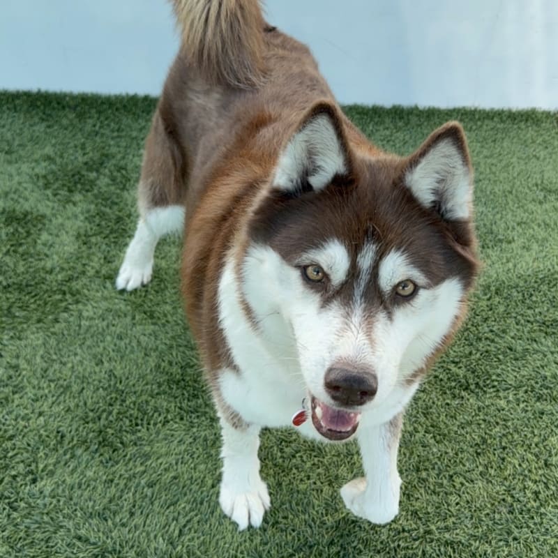 – Sweet with people – Good with dogs who like to play rough – Loves to sun bathe – Social and silly – Housetrained/ potty trained