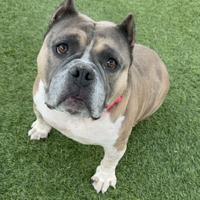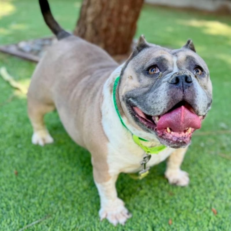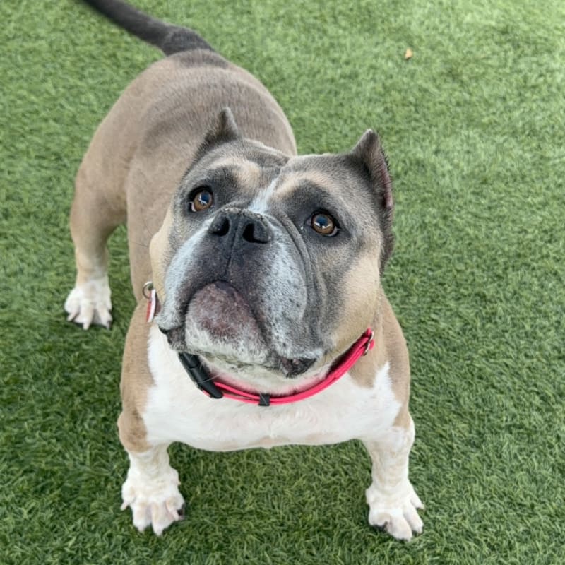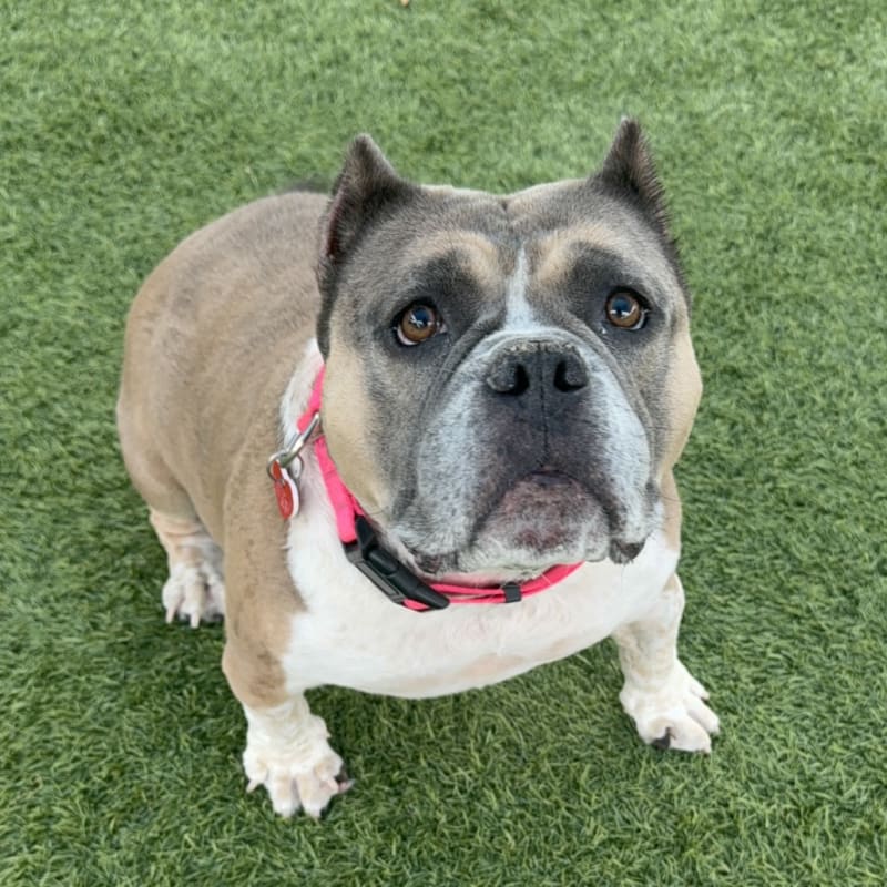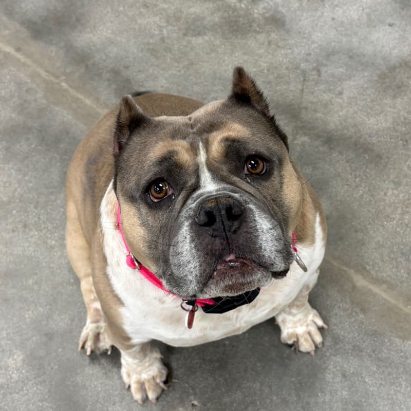 – Wiggly and Happy – Lover of People! – Always ready for a belly rub! – Great office dog – knows “sit” – Couch potato and shadow – Wants to be your one and only